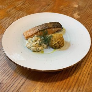 Kartoffelpüree | Gurken-Dill Salat | Creme fraiche | Tatar Sauce